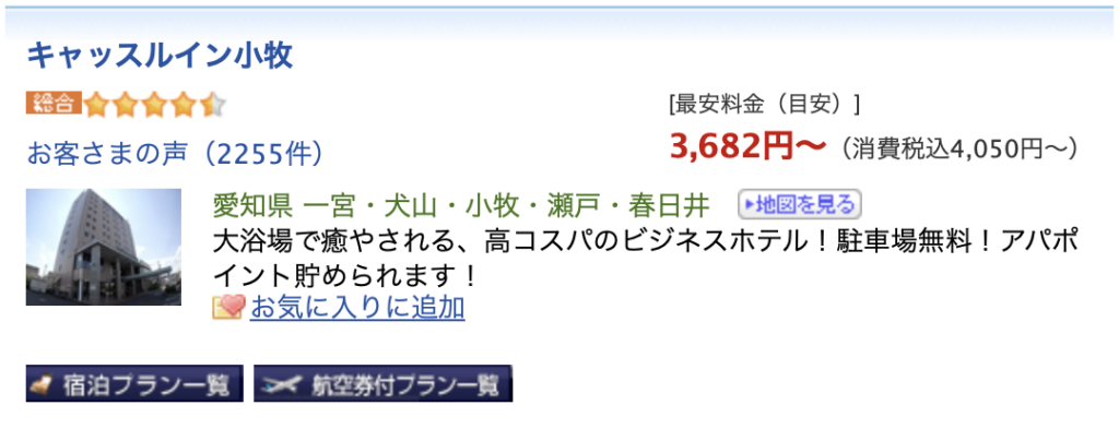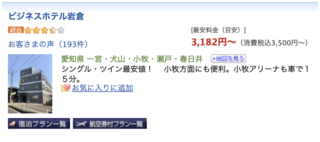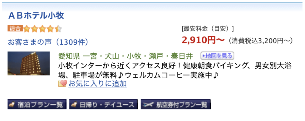 その距離2 kmとすぐ隣にあるホテルで、五条川からアクセスしやすい落ち着いたホテル、Google 口コミ評価は「★3.1」