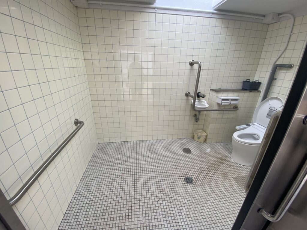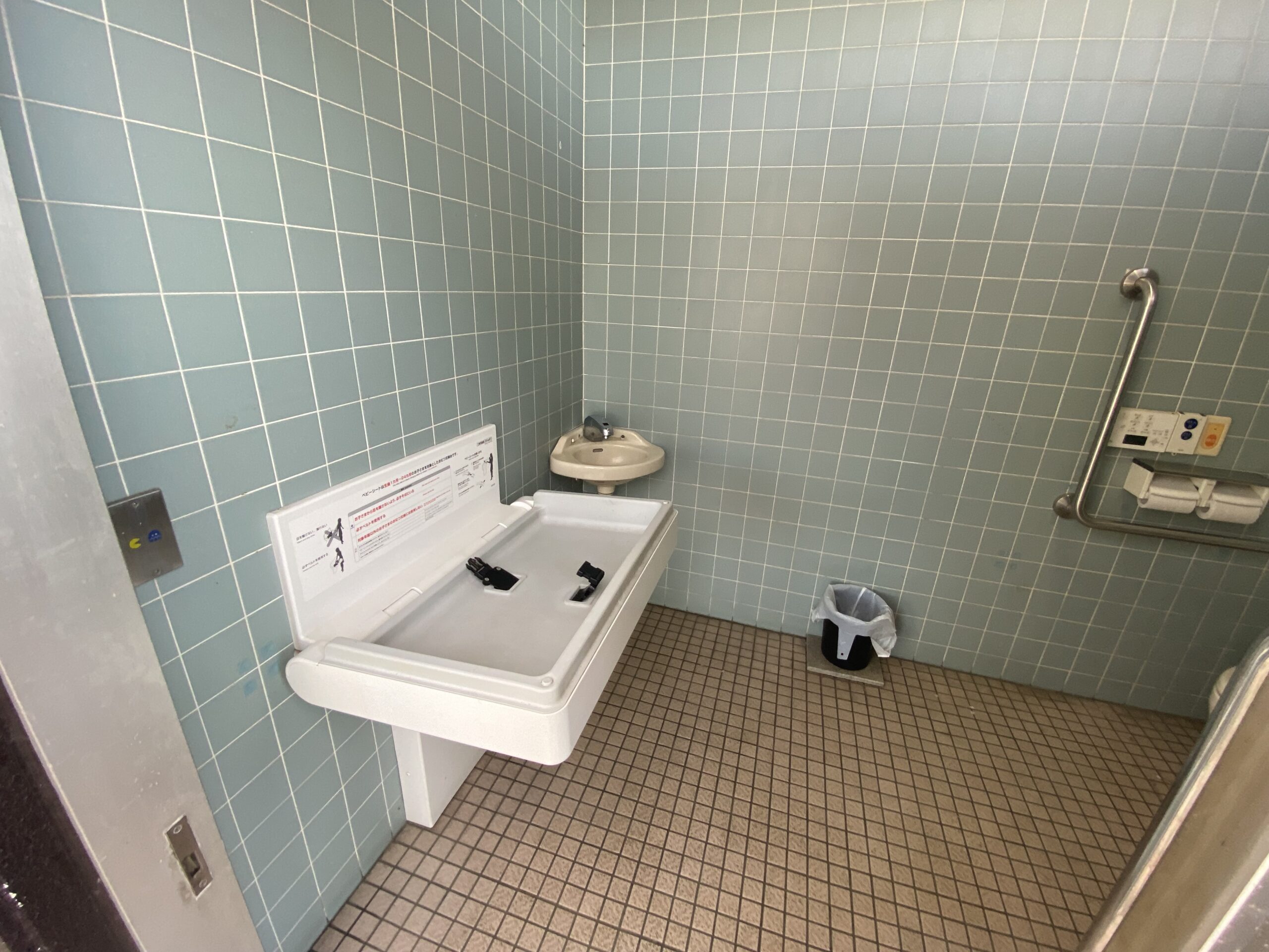 車椅子が利用できる大きな多目的トイレがありますが、赤ちゃんのオムツ台などはありませんでした。