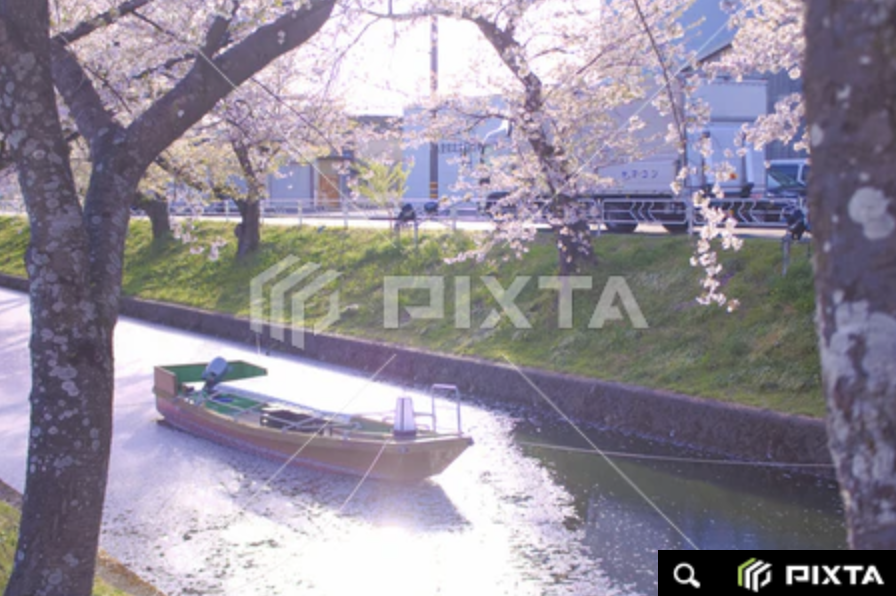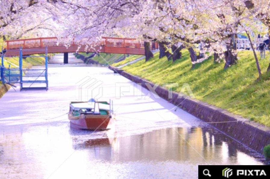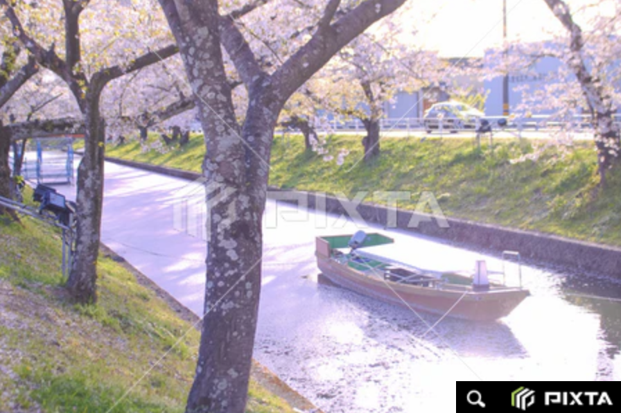 写真スポットである「遊覧船と花筏」の風景を以下に掲載しておきます。