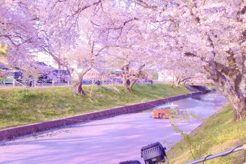 桜の散りはじめの時期には、遊覧船の周りには花筏ができていて、とても幻想的な風景が広がっていました。
