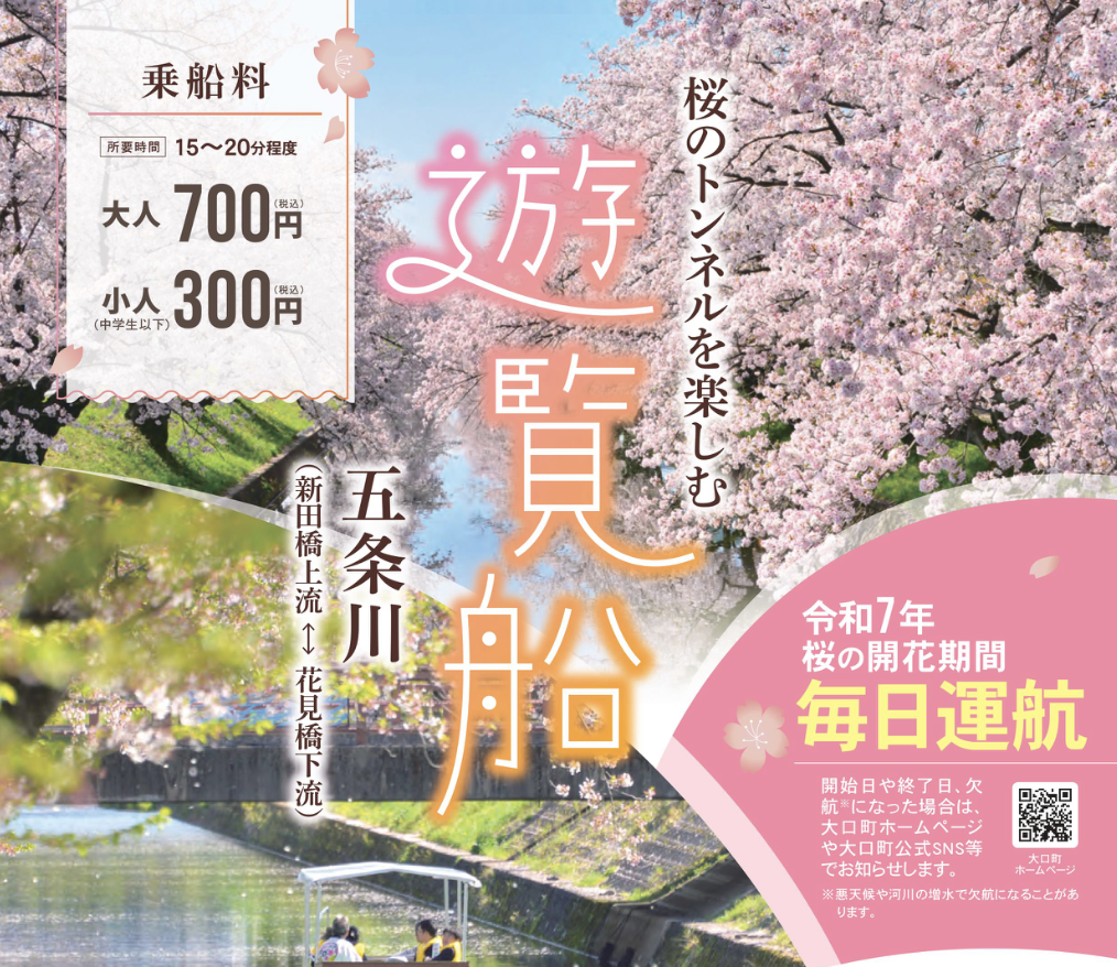 遊覧船の運行期間や欠航情報は、以下の大口町ページにて毎年公開していますので、ぜひチェックしてみてください。