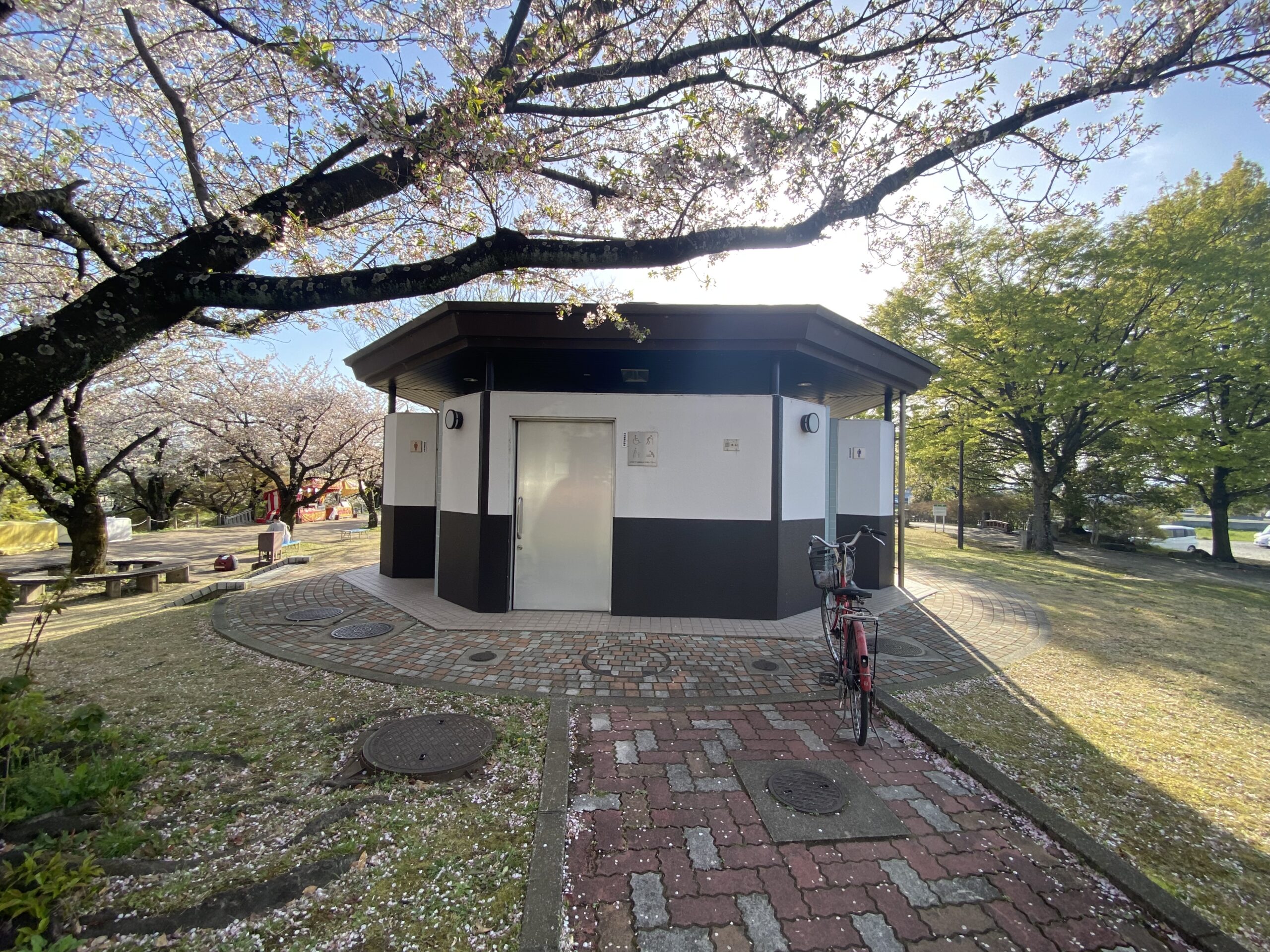 五条川並木道の真ん中には、オークマグラウンドの公衆トイレがあります。